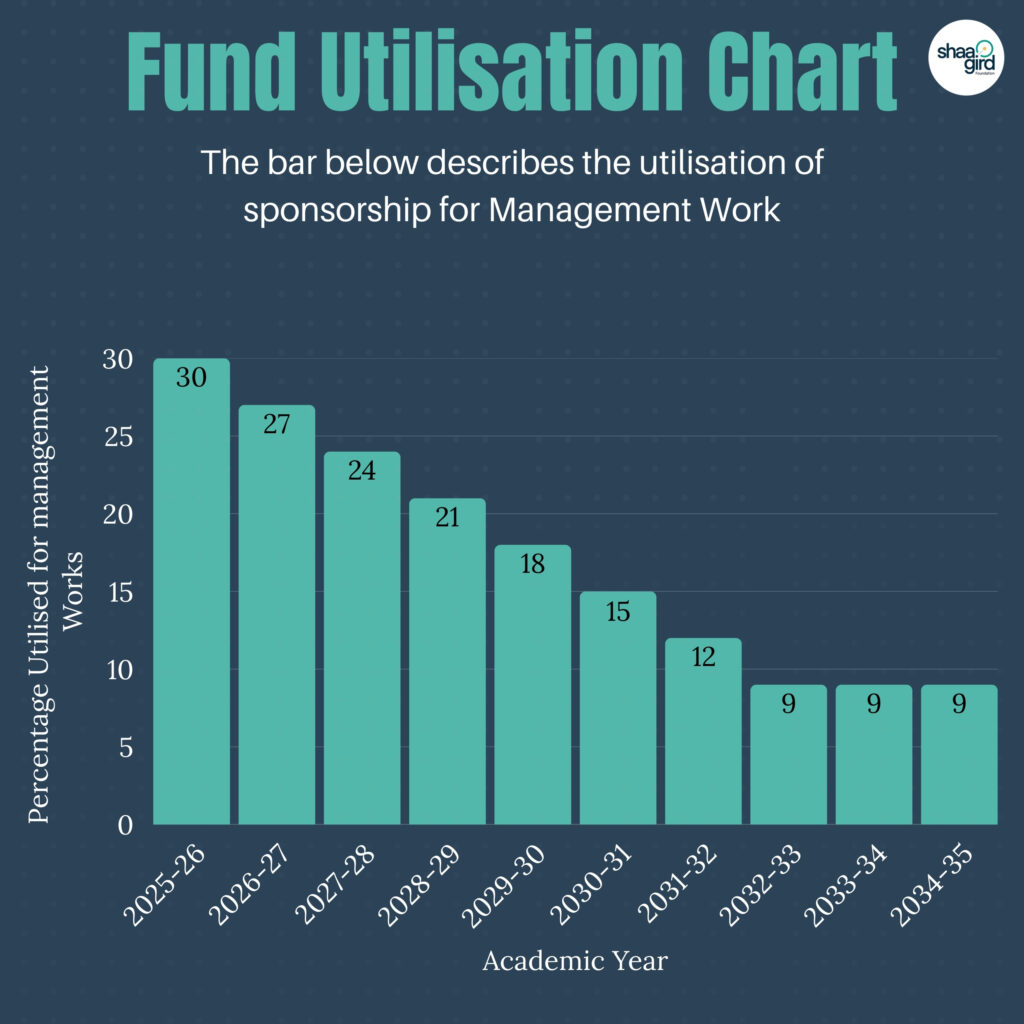 A significant portion of this allocation will go into the development, maintenance, and security of our website. Shaagird functions heavily through its website from child sponsorships to communication. This aims to better serve both our students and our sponsors, creating a bridge that strengthens this digital space, so it remains secure, accessible, and meaningful.