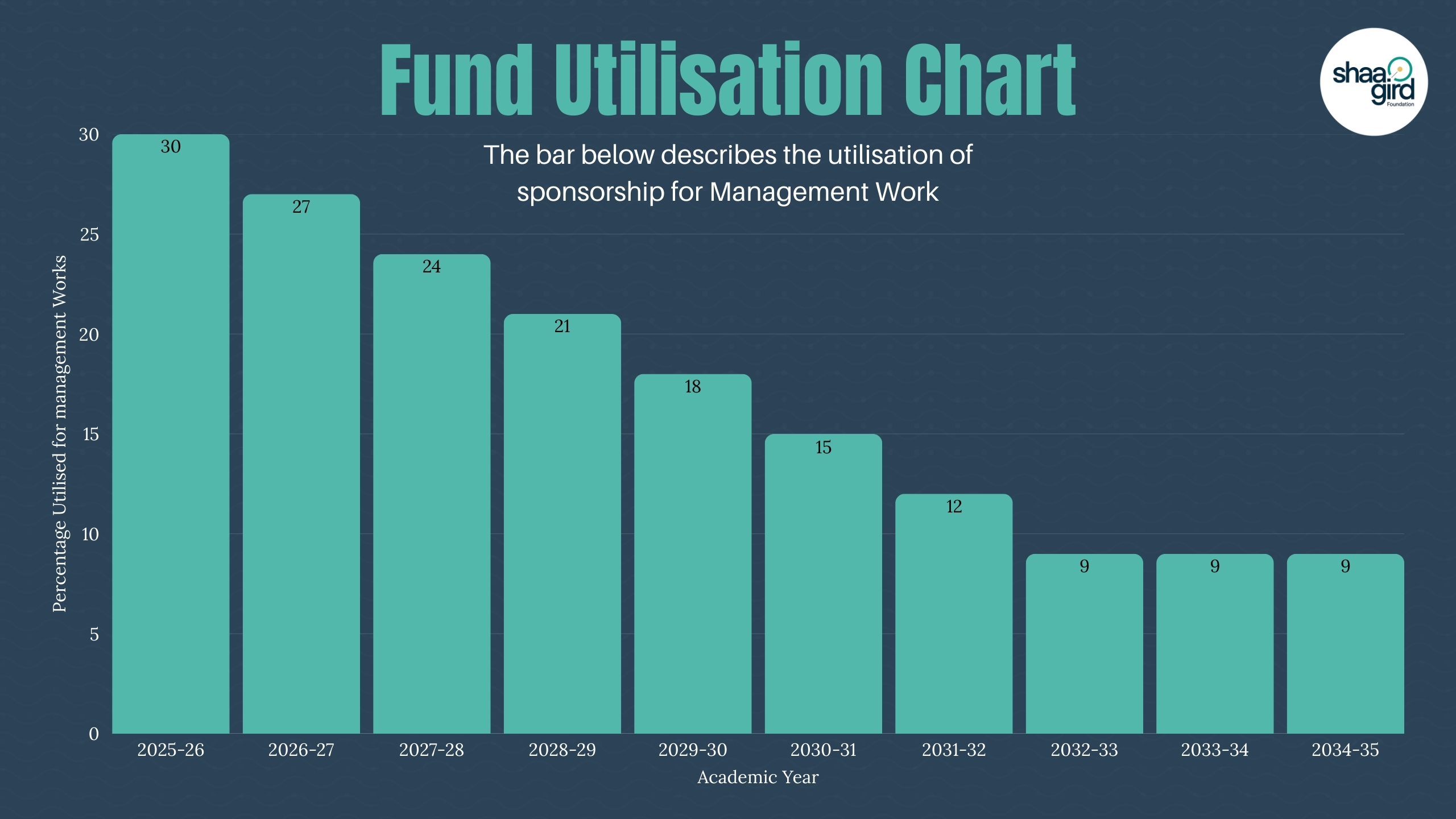 We are deeply committed to becoming more efficient over time. Starting next year (2026-2027), this percentage will be reduced by 3% annually, until only 9% of your funds is used for operational expenses by the year 2033. This gradual reduction reflects our long-term commitment to maximising the impact of your donations. By steadily decreasing administrative costs, we aim to channel a larger share of your contributions directly toward educational interventions that transform the lives of underprivileged children.